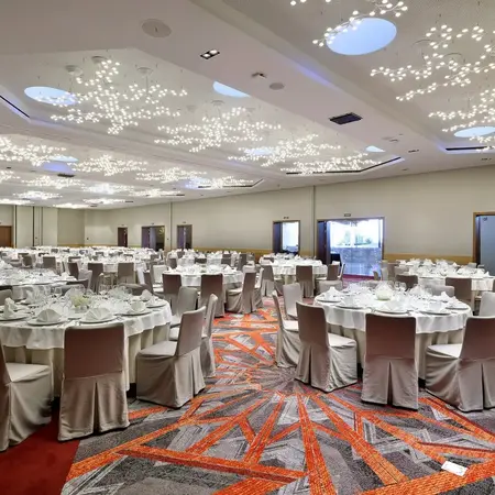 Hard Rock Hotel Tenerife stands out for its dramatic oceanfront location and variety of distinctive wedding venues. Couples can choose from panoramic rooftop spaces like the 16th floor sky lounge, beachfront settings or large indoor ballrooms, allowing weddings to range from intimate ceremonies to grand celebrations. One of the hotel’s main event spaces spans over 546 m² and can host up to 500 guests, giving plenty of flexibility for larger destination weddings.